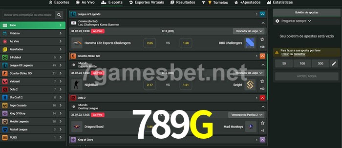 O 789G oferece uma grande seleção de opções de apostas em e-sports com probabilidades competitivas